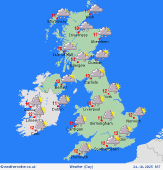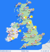 Saturday A generally showery day, with showers more frequent along northern and eastern coasts as the well as over the surrounding the Irish Sea coastal areas. Later in the day, a longer spell of rain may affect eastern coastal areas of Scotland and England. Ireland will see scattered showers, more frequent for a time in north. Highs around 10°C in the south and 7°C in the north.