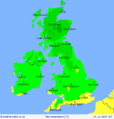 Friday Many areas will enjoy a dry and bright day with sunny spells, though it will be rather windy at times. Western parts of Ireland and Scotland will see frequent showers, turning wintry over the Scottish Highlands, while a few showers may reach northwest England and north Wales. Highs of 8C in the north and around 10C in the south.