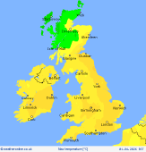 Wednesday Rain for northwest Scotland and the far north and west of Ireland this morning. PLenty of cloud in other areas, this breaking to allow some bright or sunny spells especially in parts of eastern Wales, the Midlands and eastern England. Showers rain slips south through Ireland and Scotland this afternoon, reaching west and north Wales and northwest England this evening. The rain becoming heavier in Scotland for a time although turning drier and brighter in the northwest. A few showers over parts of eastern England but mostly dry. A cooler day at 7C in northern Scotland, 15C in eastern England.